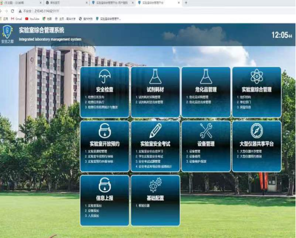 健全学校层面的管理力量。加强实验室管理,组建实验管理办公室,整合学校实验管理职能,打造一支作风正,能力强、素质高的国有资产与实验室管理队伍。压实学院层面的管理责任。采取“学、述、改”相结合的形式,对学校实验室安全隐患进行全面排查,启动“加强实验室安全专项行动”,压实职能部门和二级单位责任。盘底清查实验室肃清安全隐患。盘底全校实验室信息,对全校实验室人员、房间、重点管控试剂、实验装备进行清查定位;组织实验室安全大检查,清理典型隐患,并逐一整改;成立实验室安全巡查队,开展实验室安全专项检查,并组织人员复查,实验室安全检查及整改过程严格实行闭环管理,优化实验室安全检查系统、确保实验室安全稳定。