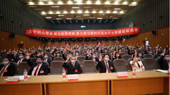 随后,工作人员宣读了大会关于学校第三届党委工作报告的决议和学校第三届纪委工作报告的决议,全体与会代表举手表决通过。