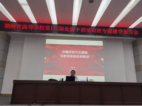 5月13日,湖南省高等学校第143期处级干部培训班第二周授课在红湘校区图书馆学术报告厅按计划展开。
