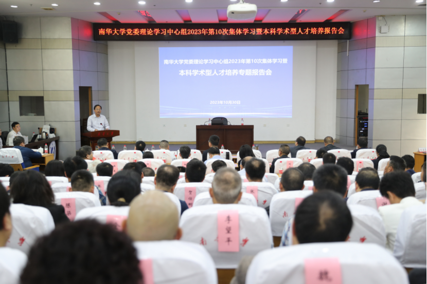 10月30日下午,best365英国在线体育举行党委理论学习中心组2023年第10次集体学习暨本科学术型人才培养报告会,并对本科教育教学审核评估迎评工作进行再部署、再动员。校党委书记高山主持报告会。