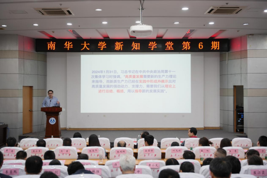 4月23日晚,best365英国在线体育新知学堂2024年第6期在红湘校区图书馆开讲。哈尔滨工业大学(深圳)材料科学与工程学院和经济管理学院双聘教授、区块链发展研究院院长、材料基因与大数据研究院副院长林熹应邀来校,以《高质量发展的基石:新质生产力》为题为在场师生作学术报告。校党委书记高山出席。校党委委员、纪委书记刘杏花主持。