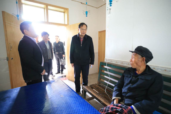 高山一行先后实地查看了学校健康扶贫基地——古塘乡卫生院、申家村竹山岭经果林示范基地、申家村综合服务中心改扩建工程等地,通过现场听取汇报,与项目负责人、驻村工作队交谈等方式,详细了解各个项目建设和产业发展情况。随后,在申家村会议室召开座谈会。学校驻村帮扶工作队队长邹海贵介绍了工作队的基本情况,汇报了2018年以来我校脱贫攻坚工作的主要思路、取得成效、特色与亮点;申家村村支书吴以呈、古塘乡乡长贺永分别对申家村、古塘乡情况进行了介绍;陈群肯定了工作队入驻涟源以来的工作成绩,并代表市委市政府感谢学校为涟源脱贫攻坚做出的贡献。