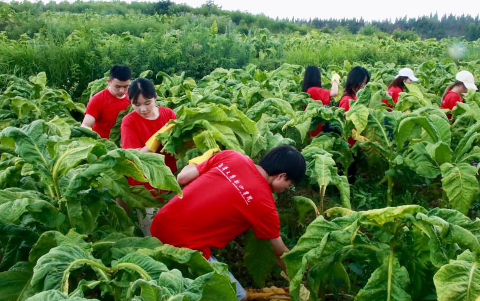 志愿者们去到烟叶田中,与烟农一起采摘烟叶。为了更好践行“做好一件事”的活动目标,实践队主动去到村民家中切猪草、晒豆角、除杂草、清洁卫生、做早餐。在村委会的帮助下,实践队走访了村里的老人,为老人和村民拍照,并免费将照片打印装裱,赠送给村民。“要成为一个做实事的人”,实践队队员寄宿在一位老党员家中,闲暇之余,老党员为队员们讲述他当兵、退伍、工作等经历。