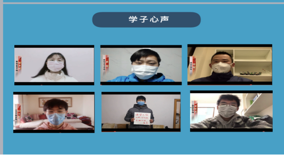 来自武汉的核科学技术学院龚璇等6位本科生代表通过用手机录制短视频的方式,分别分享了他们对于全国各地医务工作者驰援武汉、火神山雷神山医院建设的中国速度、众志成城抗击疫情的中国力量等感受最深的点滴故事。