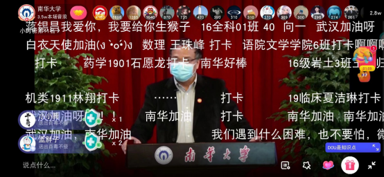 一堂课接近尾声在《我和我的祖国》优美旋律和动人歌词的环绕下,这堂特别的思政课结束了。在直播平台观看的师生们纷纷留言:全程观看和聆听了这堂课,既看到了全国抗疫大局,又感受到了优秀南华人的责任担当,别样而生动。很多同学都留下评论,将谨记高山书记的期望,砥砺青春,不负韶华,勇担时代重任,争做优秀南华人,为健康中国贡献力量!