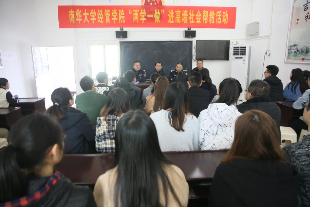 在衡州监狱党委委员、副监狱长戴金定,纪委副书记雷穆鸿,教育科科长刘河清,教育科副科长谢先德等监狱领导、干警的陪同下,学院师生参观了监狱服刑人员接受改造的生产、生活、学习、休息等区域。之后,在监区内举行现场主题警示教育大会,刘河清主持会议。