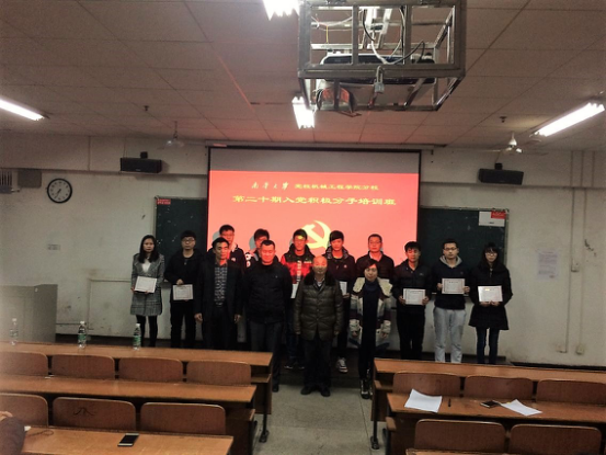 1129日晚,机械工程学院第二十期入党积极分子培训班结业典礼在红湘校区第一教学楼211教室成功举行。机械工程学院院长雷泽勇、学工室徐雪锋、陈楠、古江汉等老师出席本次结业典礼,典礼由徐雪峰老师主持。